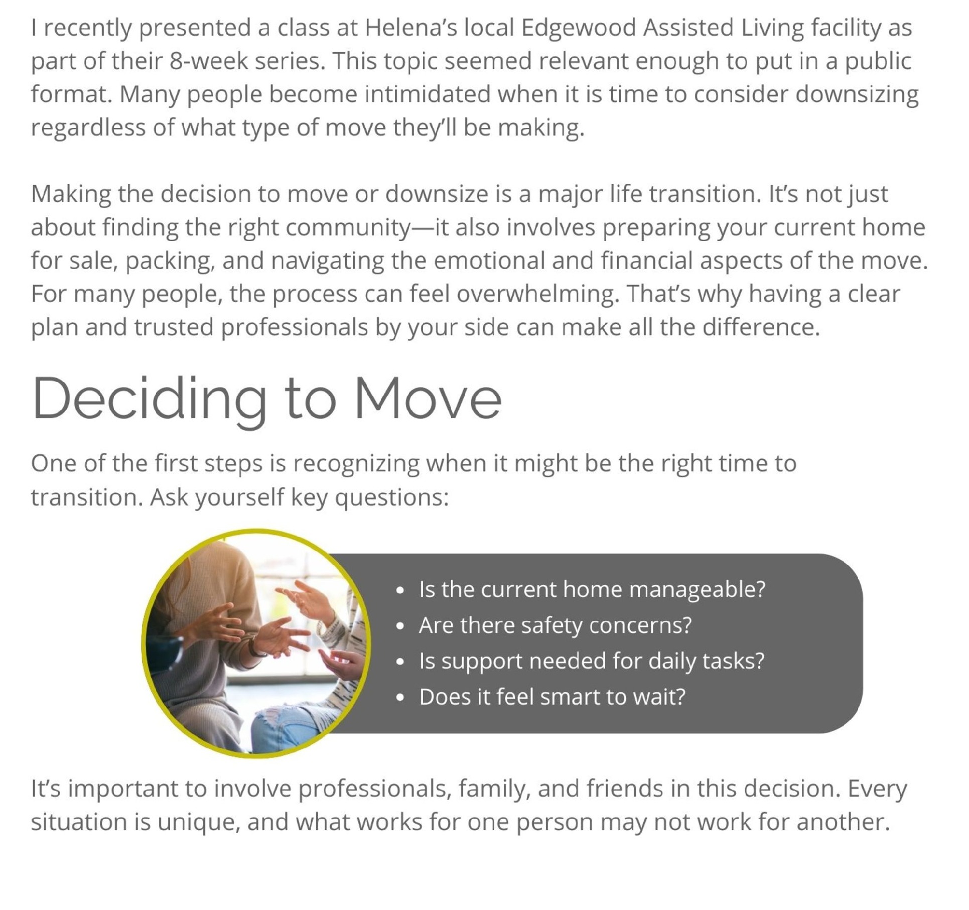 Making the Move | A Real Estate Guide to Transitioning into Assisted Living or Down-Sizing